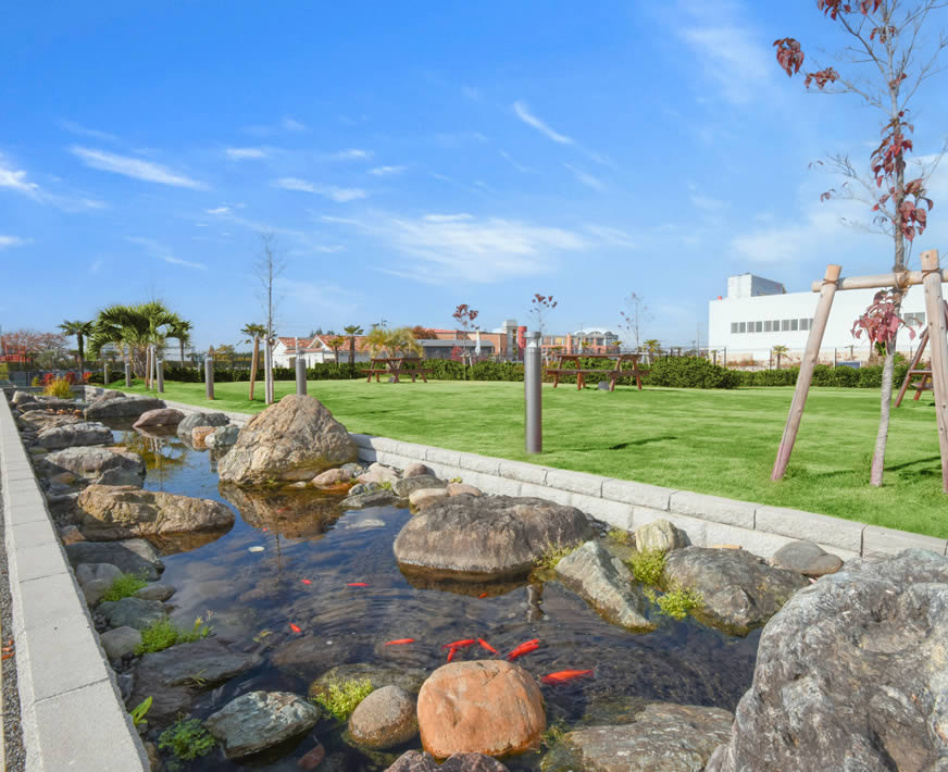 聖地霊園「未来」は都市部に隣接しながら、豊かな自然に囲まれた、環境に恵まれた霊園です。その環境を保護する為、最新設備の管理施設を設置しています。