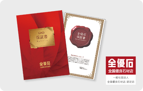和光が施工したお墓には、全優石の墓石保証書を発行いたします。全優石は全国約200社の認定を受けた石材店のみ加入できる全国組織です。和光は全優石の認定を受けた石材店ですので、安心してお墓をお求めいただけます。また、ご法要の手配やお困り事など、担当スタッフが優しくご対応いたしますので、何でもご相談ください。